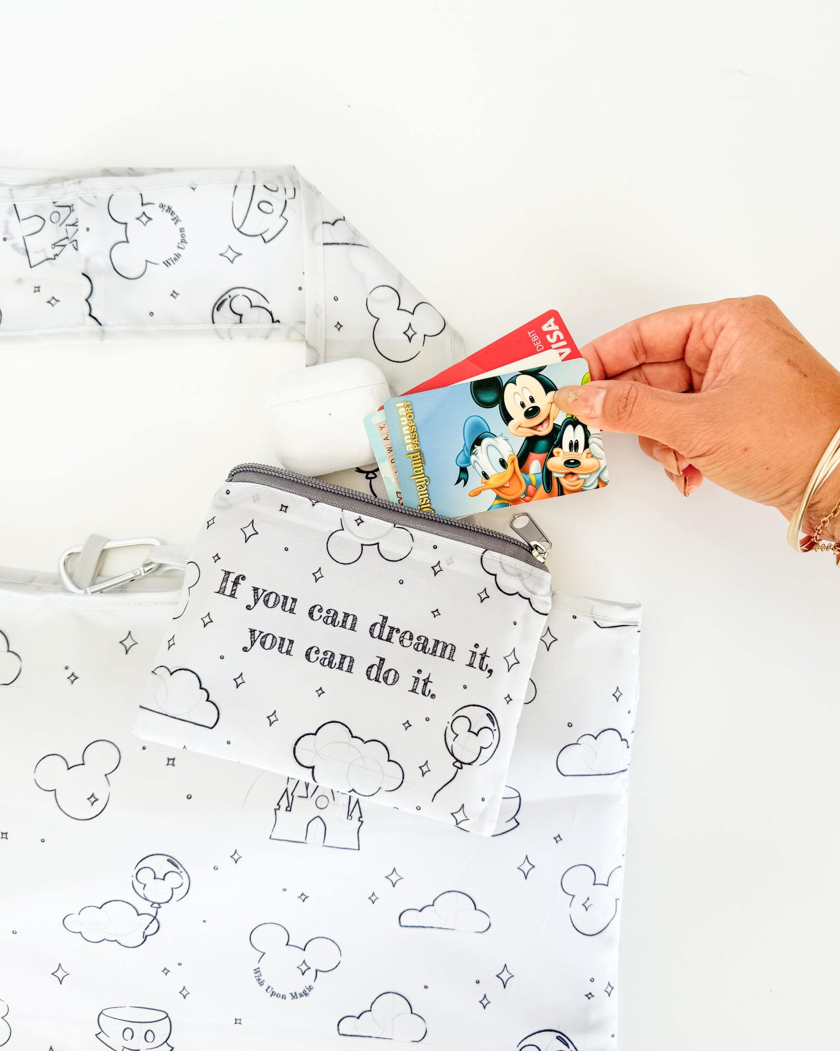 Carry a little magic with you wherever you go! This Tote-ally Magical Tote Bag is custom designed with an extra large capacity to hold all your thingamabobs, featuring longer-than-standard and super wide straps for easy shoulder carrying and improved weight distribution for added comfort. Each Tote Bag stores away in the matching, zippered Mini Tote Keeper.