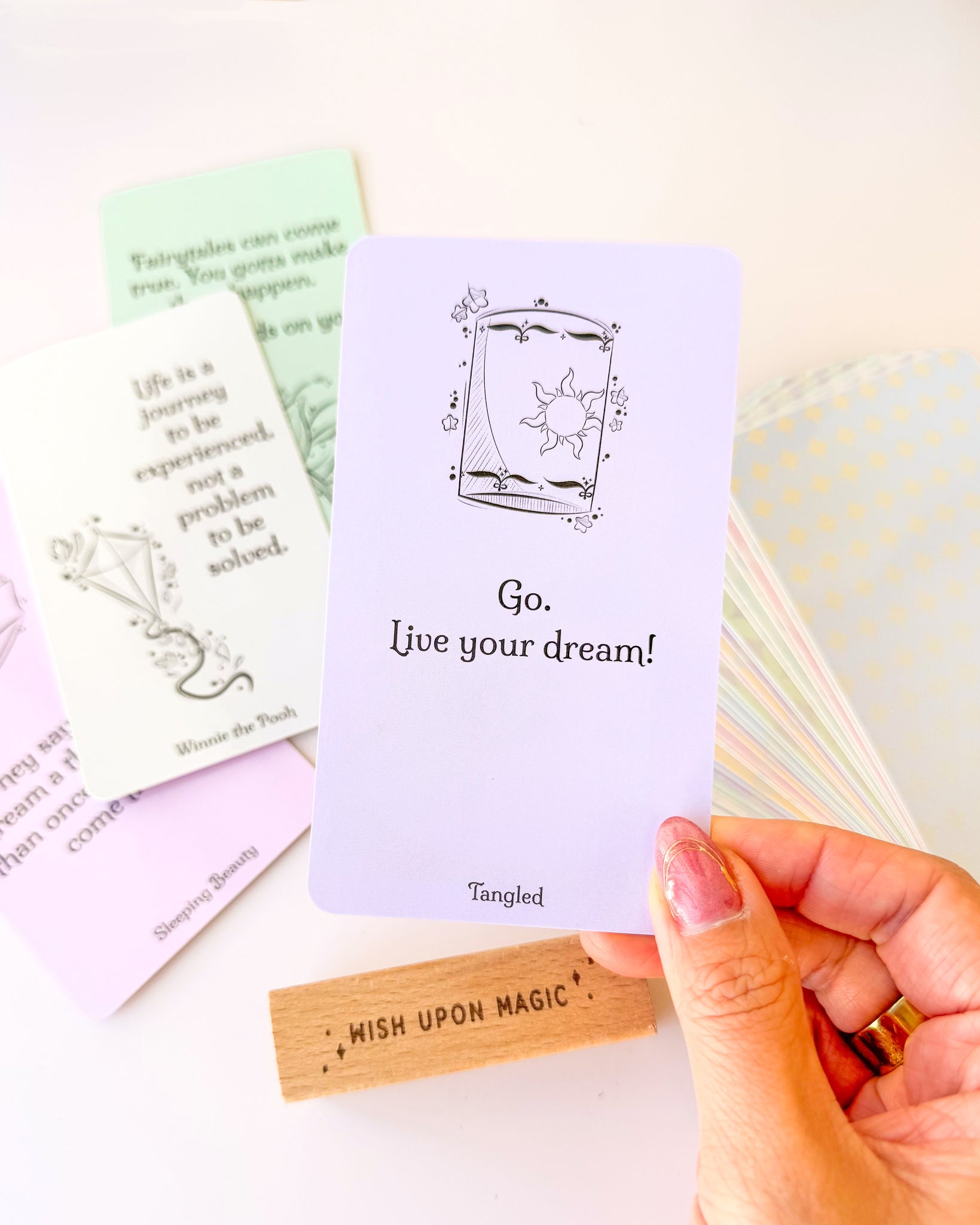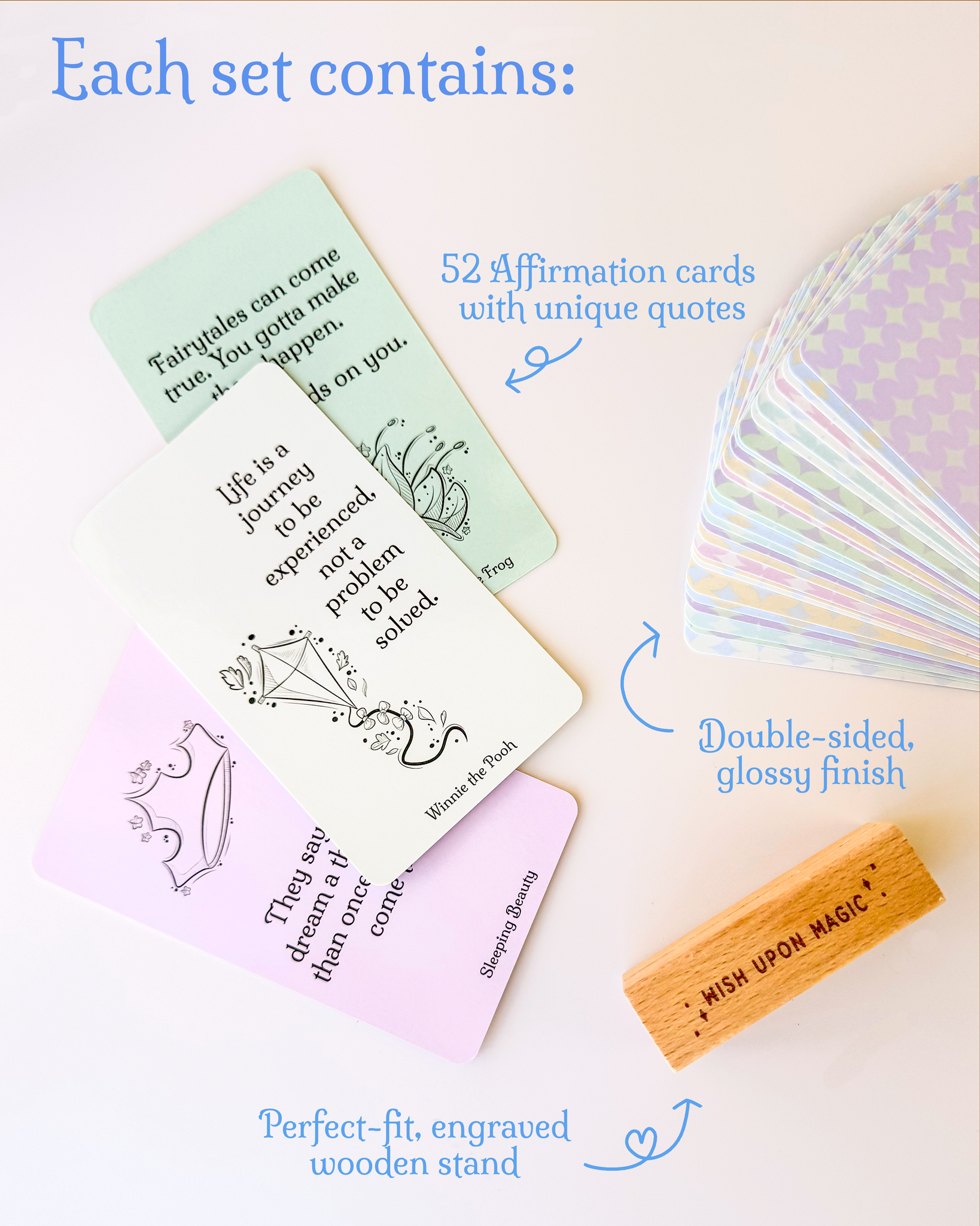 Daily affirmations for everyday dreamers and believers who choose to live their story with a little bit of everyday magic. Each card features a quote from dreamy Princesses as well as from well-loved heroes and cozy classics like Hercules and Winnie The Pooh.